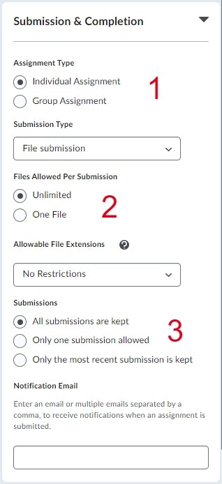 Here you will be able to adjust the submission and completion settings for your assignment .