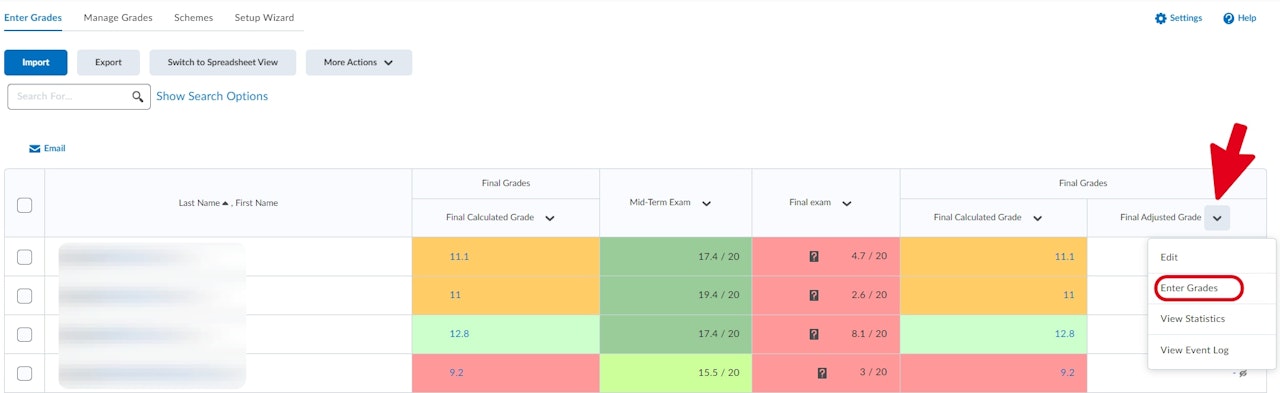 The grades will then move from the "Final Calculated Grade" column to "Final Adjusted Grade".