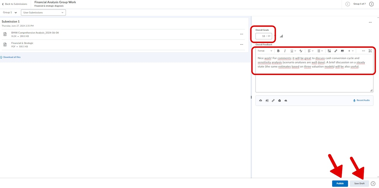 Click on "Publish" if you wish to publish the note immediately (it will be visible to students).