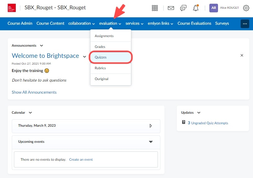 Click on Evaluation > Quizzes