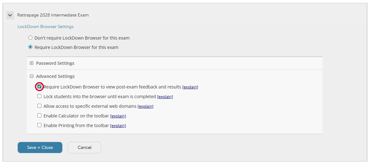 If comments and/or results are displayed after the exam, this option will require the use of LockDown Browser to display them.