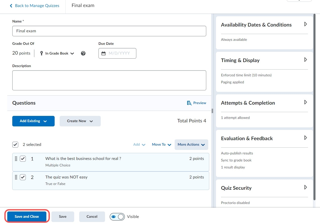 Puis Cliquez sur Save and close.