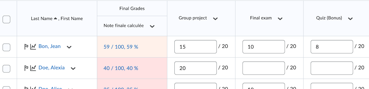 Votre gradebook passe alors en mode édition.