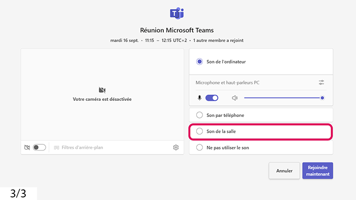 [3] : Cliquez sur son de la salle puis choisissez la salle dans laquelle vous êtes