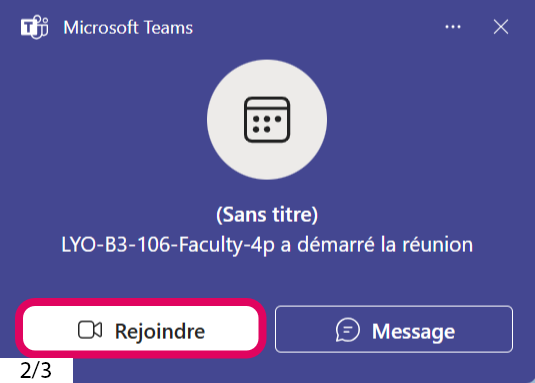 [2] : Lorsque que vous rejoignez la réunion, vous recevrez un appel sur votre pc que vous allez rejoindre également